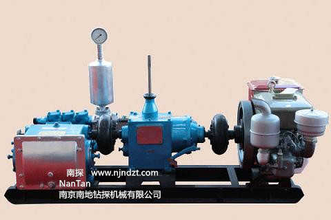主要特點:1.具有可滿足大、小口徑鉆機所需的八擋流量,流量調(diào)節(jié)范圍大,參數(shù)選擇合理??膳cXY-4巖心鉆機和XY-5型鉆機配套使用??蓾M足不同口徑、不同孔深、不同地質(zhì)巖心鉆探的需要。 2.活塞為碗形加尼龍靠背的自封式S型聚胺脂橡膠活塞,大大提高使用壽命。 3.拉桿上設有五道防塵密封圈,以防止液力端的泥漿帶入動力端和動力端潤滑油濾。經(jīng)多次生產(chǎn)試驗證明,密封可靠,性能良好。致使齒輪延長使用壽命。 4.進排水閥采用鋼球。并在閥蓋上設有減聲橡膠墊,以減少沖擊噪聲。 5.壓力表采用BY-1型抗震壓力表,壽命長。 6.結(jié)構(gòu)緊湊,造型美觀。 7.可拆性好,便于維修和搬遷。