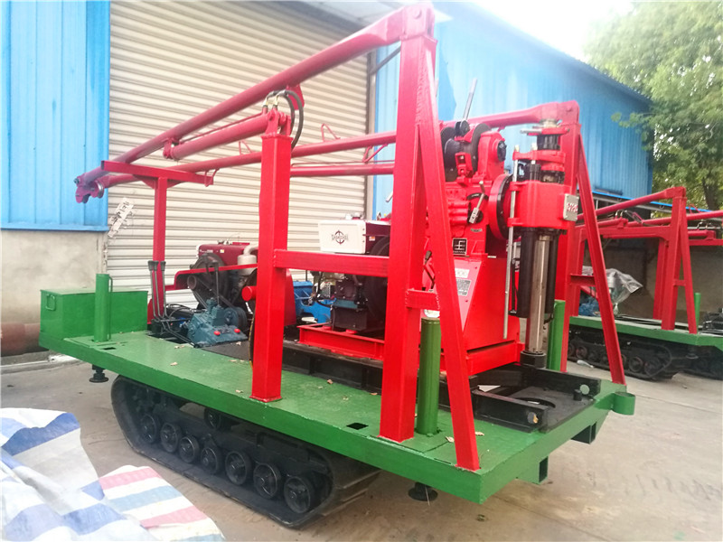 4、鉆機、水泵、塔架一體,搬家方便快捷,可自行上下汽車。搬家時鉆桿鉆具等一切東西均可放在履帶底盤上一次運走。