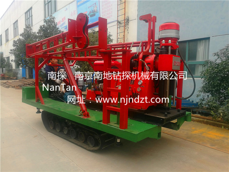 該履帶底盤承載重量達4T,可以裝載各種小型鉆機,如:XY-1-1、XY-1、XY-1A、XY-1A(YJ)、XY-1A-4、XY-1A-5、XY-1B、XY-1B-1、XY-1B-2、XY-200、XY-200(YJ)、XY-200B、XY-200B-1、XY-200B-2、GXY-1系列、GXY-2Q、GXY-200B、GYQ-200、GYQ-200A、GK180、GXY-2K、GXY-2C等100-300米鉆機,并可同時載BW160、BW160A、BW200或BW200A型泥漿泵,具有雙塔架折疊式液壓起落鉆塔、行走方便等特點,廣泛適用于公路、鐵路、水電、橋梁、壩基等的工程地質勘察、地質巖芯鉆探、物理勘察、小型灌漿孔、爆破孔、水井孔和空調孔的鉆進。