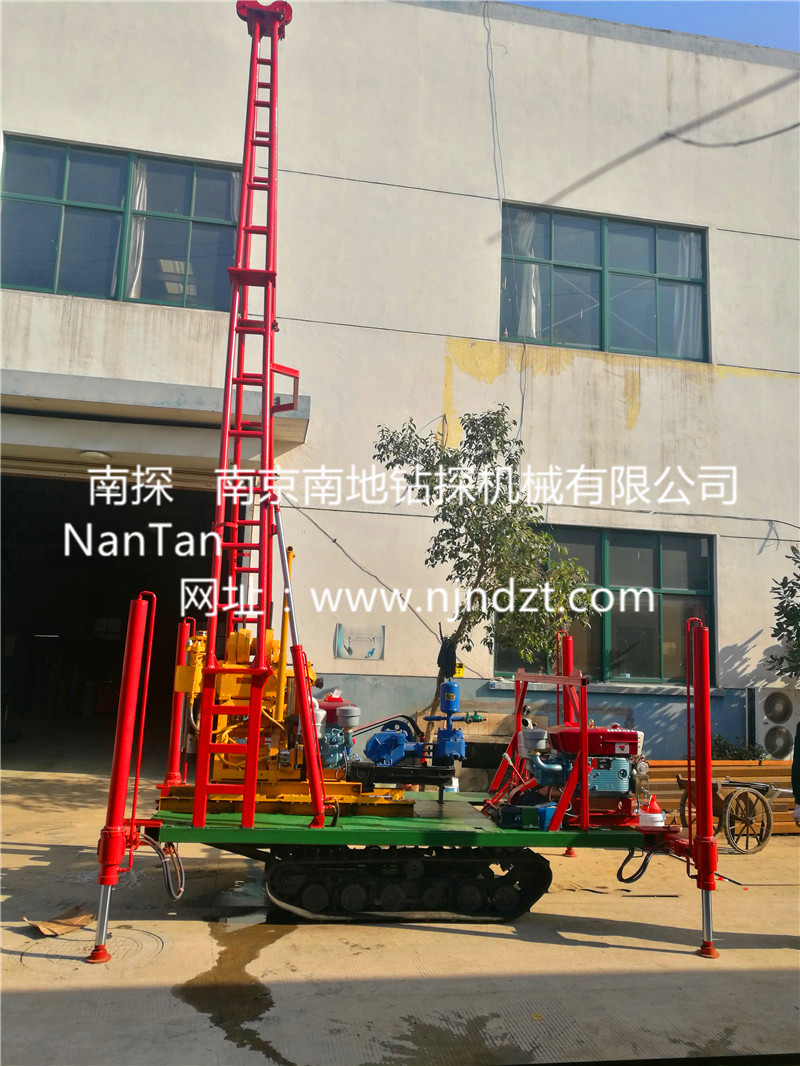 一、適用范圍:該履帶底盤承載重量達(dá)4T,可以裝載各種小型鉆機(jī),如:XY-1-1、XY-1、XY-1A、XY-1A(YJ)、XY-1A-4、XY-1A-5、XY-1B、XY-200、XY-200(YJ)、XY-200-1、XY-200-2、XY-200A、XY-200A(YJ)、GXY-1、GXY-1A、GXY-1B、GXY-1C、GXY-2K、GXY-2Q、GXY-200B、GYQ-200、GYQ-200A、GXY-2C、GK180、KD100-4、KD150等,并可同時裝載BW160、BW160A、BW200或BW200A型泥漿泵,具有液壓自動起落鉆塔、行走方便等特點,廣泛適用于公路、鐵路、水電、橋梁、壩基等的工程地質(zhì)勘察、地質(zhì)巖芯鉆探、物理勘察、小型灌漿孔、爆破孔、水井孔和空調(diào)孔的鉆進(jìn)??稍诤?、河灘、沙地、水田等惡劣環(huán)境開展靜探作業(yè),結(jié)冰道路仍可行走。