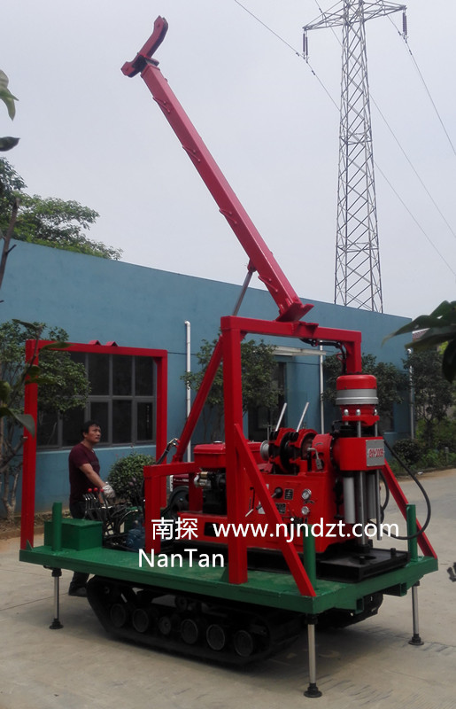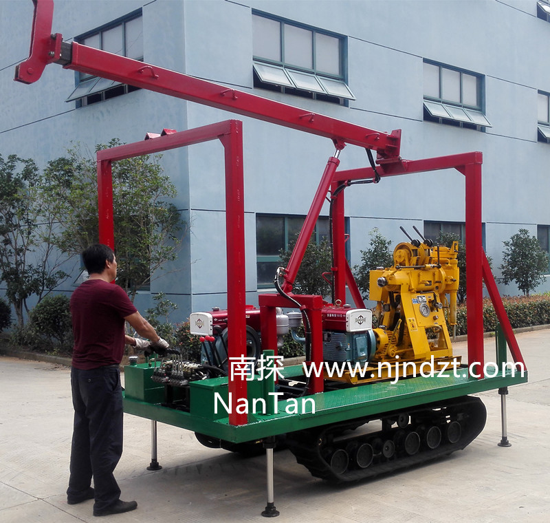 該履帶底盤承載重量達4T,可以裝載各種小型鉆機,如:XY-1-1、XY-1、XY-1A、XY-1A(YJ)、XY-1A-4、XY-1A-5、XY-1B、XY-1B-1、XY-1B-2、XY-200、XY-200(YJ)、XY-200B、XY-200B-1、XY-200B-2、GXY-1系列、GXY-2Q、GXY-200B、GYQ-200、GYQ-200A、GK180、GXY-2K、GXY-2C等100-300米鉆機,并可同時載BW160、BW160A、BW200或BW200A型泥漿泵,具有可調(diào)伸縮式液壓起落鉆塔、行走方便等特點,廣泛適用于公路、鐵路、水電、橋梁、壩基等的工程地質(zhì)勘察、地質(zhì)巖芯鉆探、物理勘察、小型灌漿孔、爆破孔、水井孔和空調(diào)孔的鉆進。