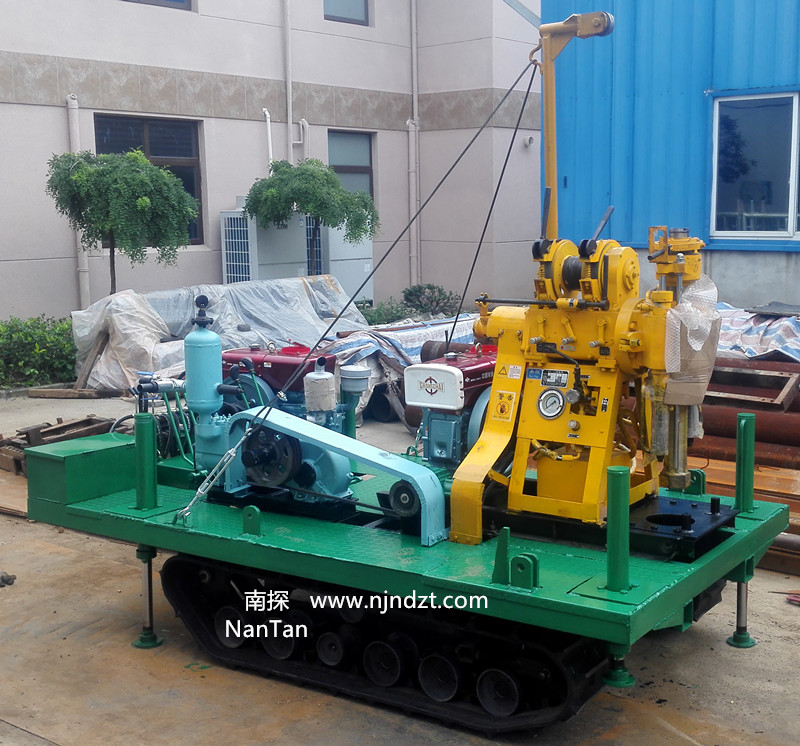 XY-1A-L-01-B型系列履帶鉆機(XY-1A-4-L-01-B型、XY-1A(YJ)-L-01-B型、XY-1A-5-L-01-B型)是將橡膠履帶底盤、動力(柴油機或電機)、XY-1A型鉆機(或者XY-1A-4、XY-1A(YJ)、XY-1A-5型)、鉆機平臺、液壓支撐腿系統(tǒng)、四角架鉆塔、BW160A或BW200型泥漿泵(-4、-5自帶水泵)等共同組裝在一個機架上。鉆機、泥漿泵一個動力(柴油機或電機),橡膠履帶底盤一個動力(柴油機或電機)帶動,互不干擾,避免單動力變換負(fù)荷造成磨損影響施工進(jìn)度。